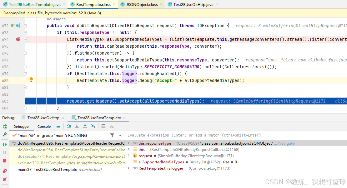 因此 使用这二者的差异就在于 RestTemplate 这边发送请求的时候, 根据了响应类型生成了一个 Accept 请求头, 然后 OkHttp 这边没有自动生成这个 Accept 请求头
