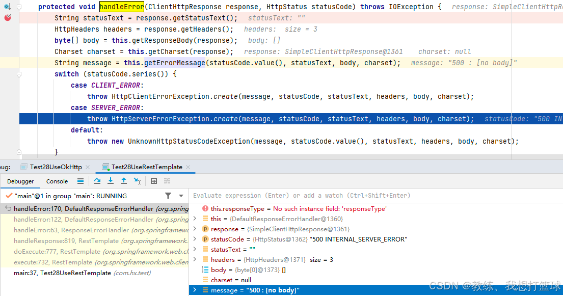 主要是 访问一个 http 服务, 使用 RestTemplate 拿500的响应, 然后使用 OkHttp 可以正常拿到数据
