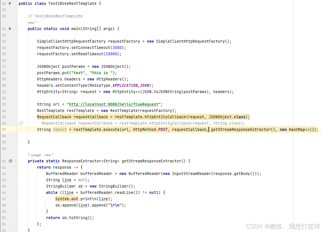 使用 RestTemplate 发送请求 示例代码如下