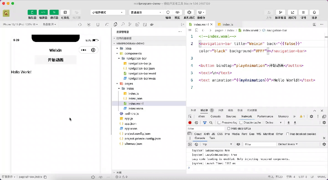 wx.createAnimation 方法用于获取动画实例 Animation,通过该实例的相关属性和方法实现动画效果。