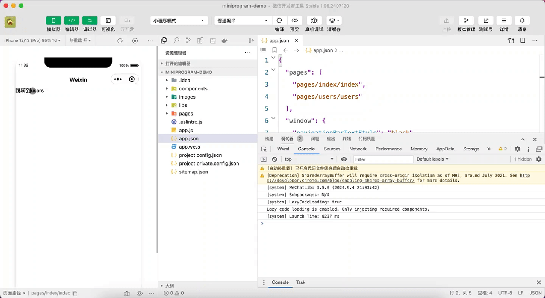 - wx.navigateTo:跳转到另一个页面,跳转后原来的页面会保留,并在导航栏左侧提供一个返回按钮,用户可以返回到之前的页面。
