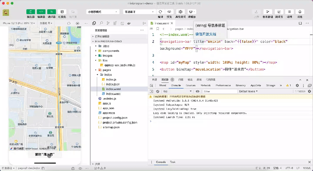 <button bindtap="moveLocation">前往"清水岩"</button>