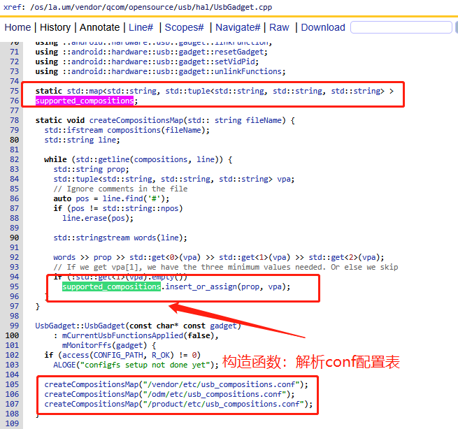解析了conf配置表添加到向量表supported_compositions 中,这个很重要后续会使用到,就是https://blog.csdn.net/qq_27672101/article/details/156097668中介绍的usb device支持的模式: