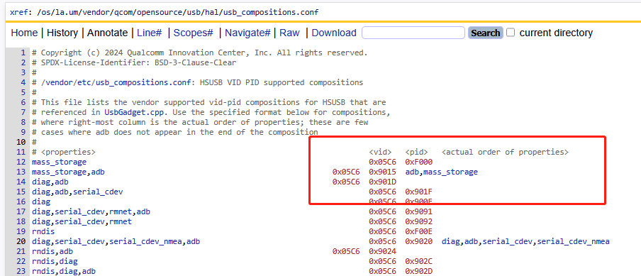 如上配置会添加到向量表**supported_compositions中,**后续上层通过usb.config属性设置gadget模式的时候,就跟根据这个向量表去设置底层驱动VID和PID端口。