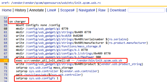 #如果sys.usb.configfs=1普通模式支持,后续通过rc来触发sys.usb.config属性的所有动作