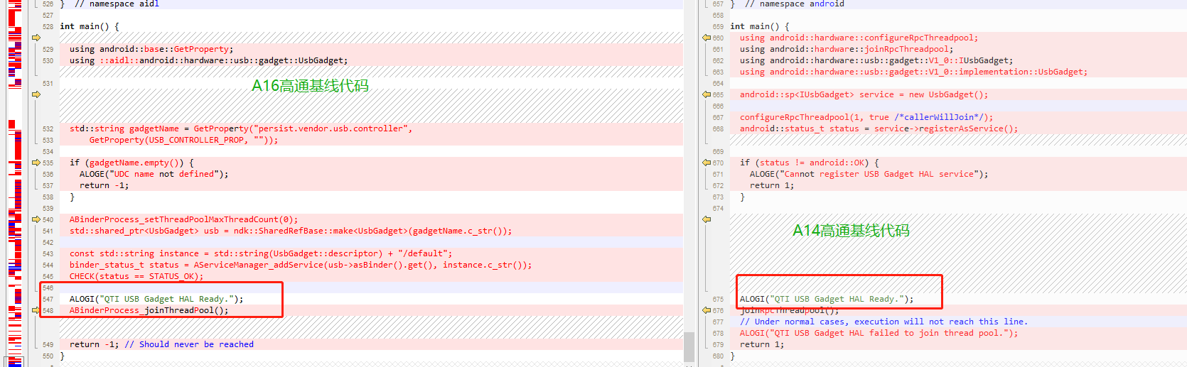 如上A14和A16的代码对比,可以看出来A16以及使用了AIDL接口,A14还是HIDL接口,其他基本上一致,都是启动一个HAL服务进程,他们的一些差别总结如下: