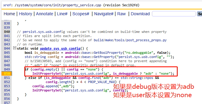 - 如果persist.sys.usb.config属性为空,如果非debug版本,设置改属性为none,默认不允许调试