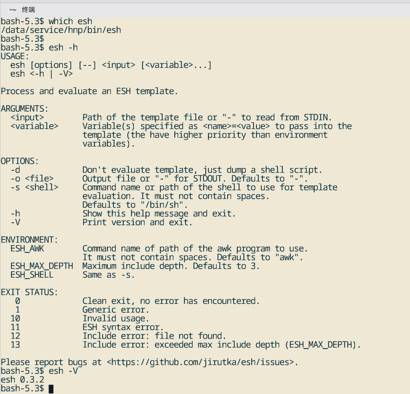 - 错误处理:esh 提供详细的错误信息,包括模板文件位置和行号