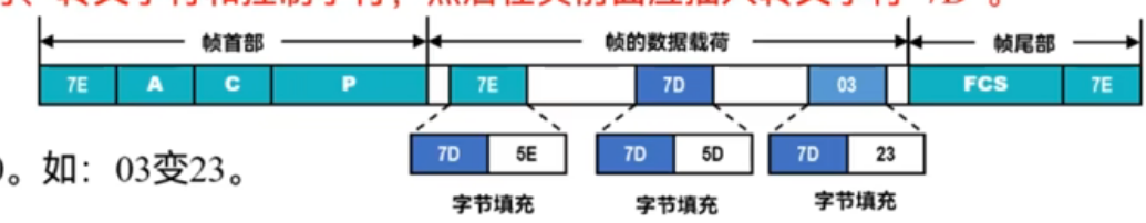 一、异步链路使用字节填充:发送时,如原载荷中含帧定界符、转义字符和控制字符,然后在其前面应插入转义字符"7D"。