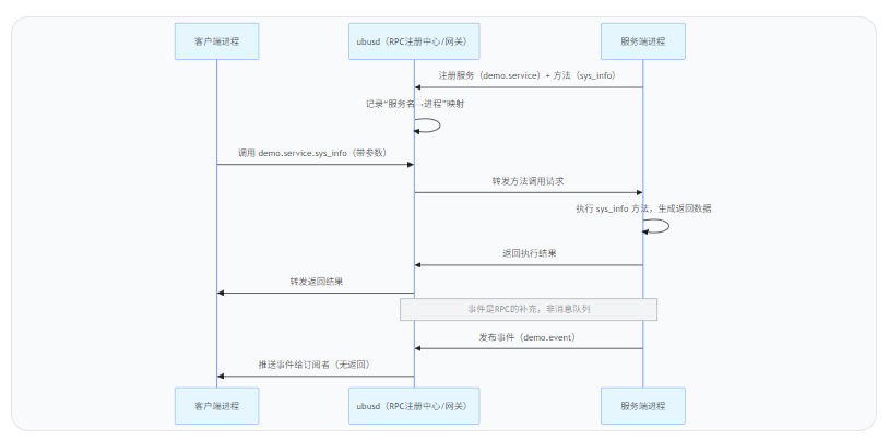 - 定位:UBUS 事件是 RPC 框架的 "补充能力"(用于状态通知),而非核心功能,不能等同于消息队列。