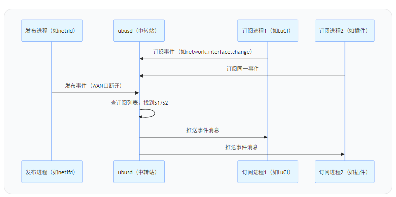 关键补充:UBUS 的 "事件发布 / 订阅" 不是消息队列