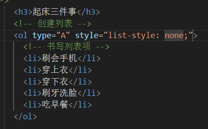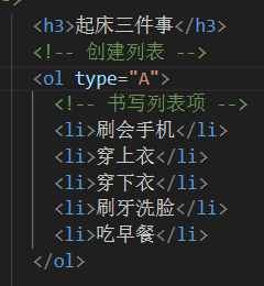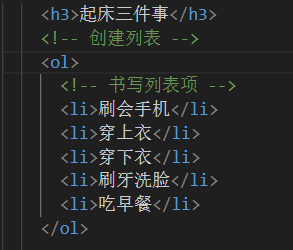 定义列表:创建一个列表,在列表中,书写一个个列表项