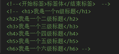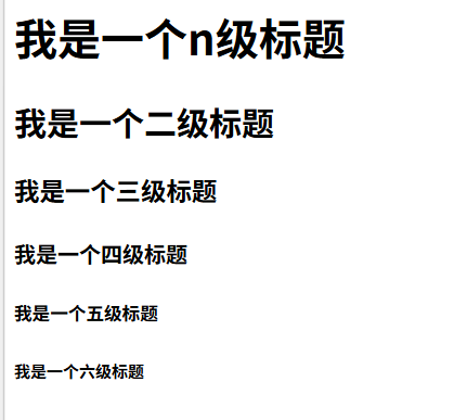 默认样式:字体加粗,字体大小有变化,从h1~h6,字体逐步变小,标签上下会有20像素左右的外边距