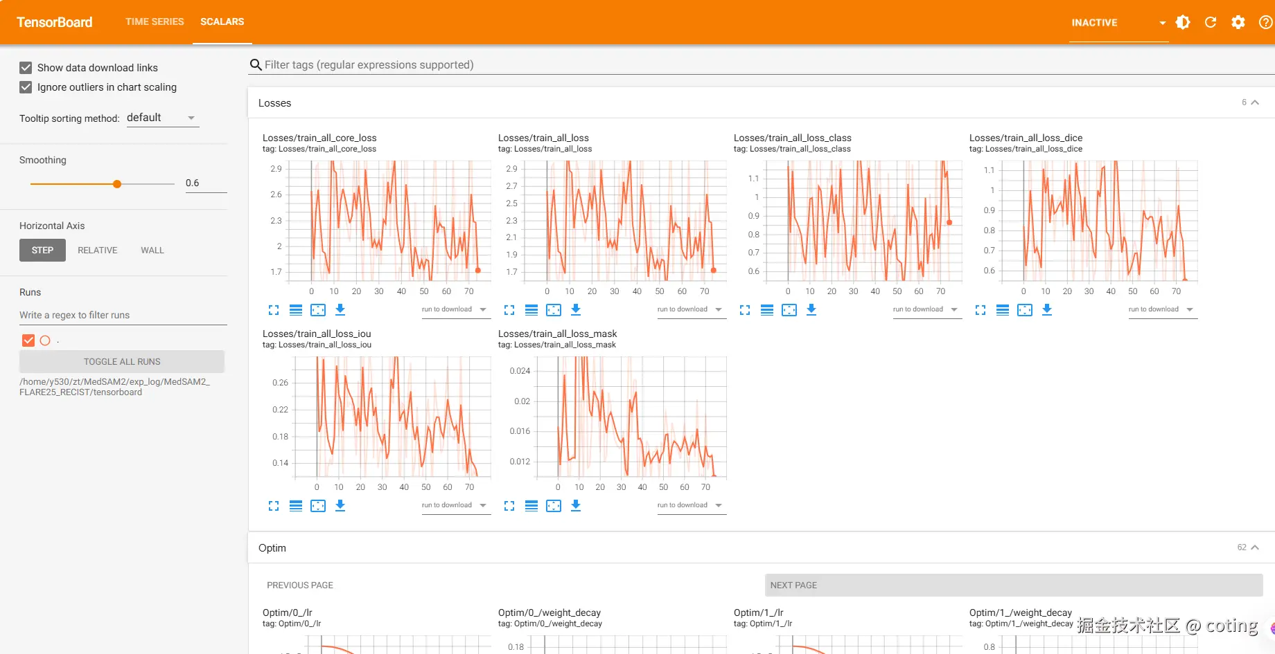 TensorBoard 会自动加载所有实验的指标,方便对比曲线趋势。
