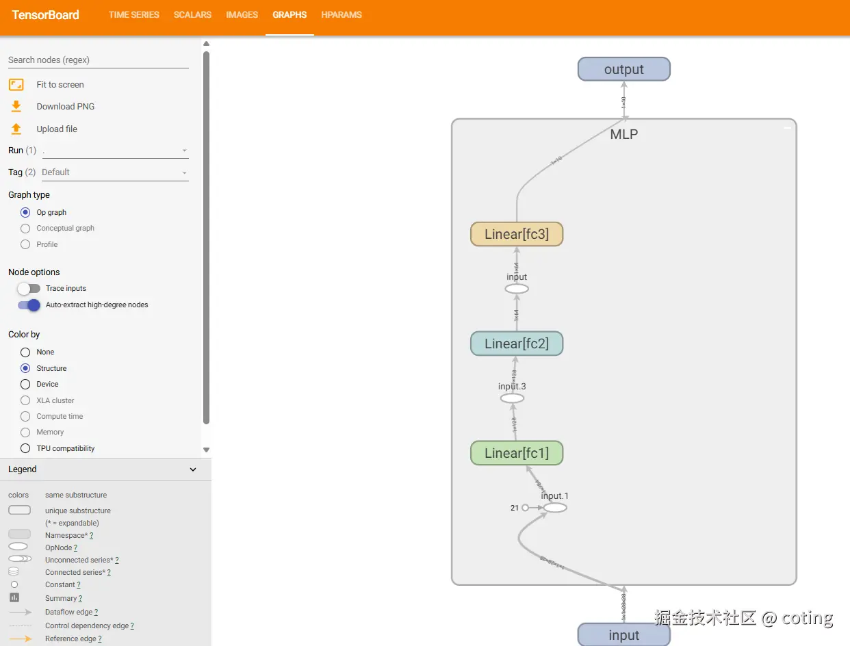 在 TensorBoard 的 Graphs 页面中,你可以看到网络的计算图结构,帮助你排查模型拼接或梯度传递错误,这个确实足够优秀了,画出来的模型结构也很清晰。