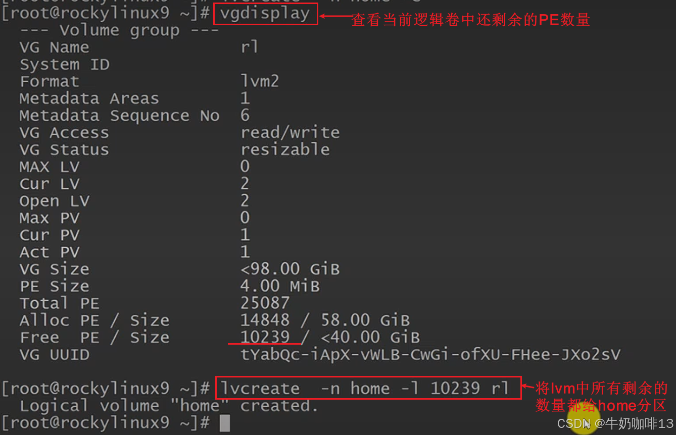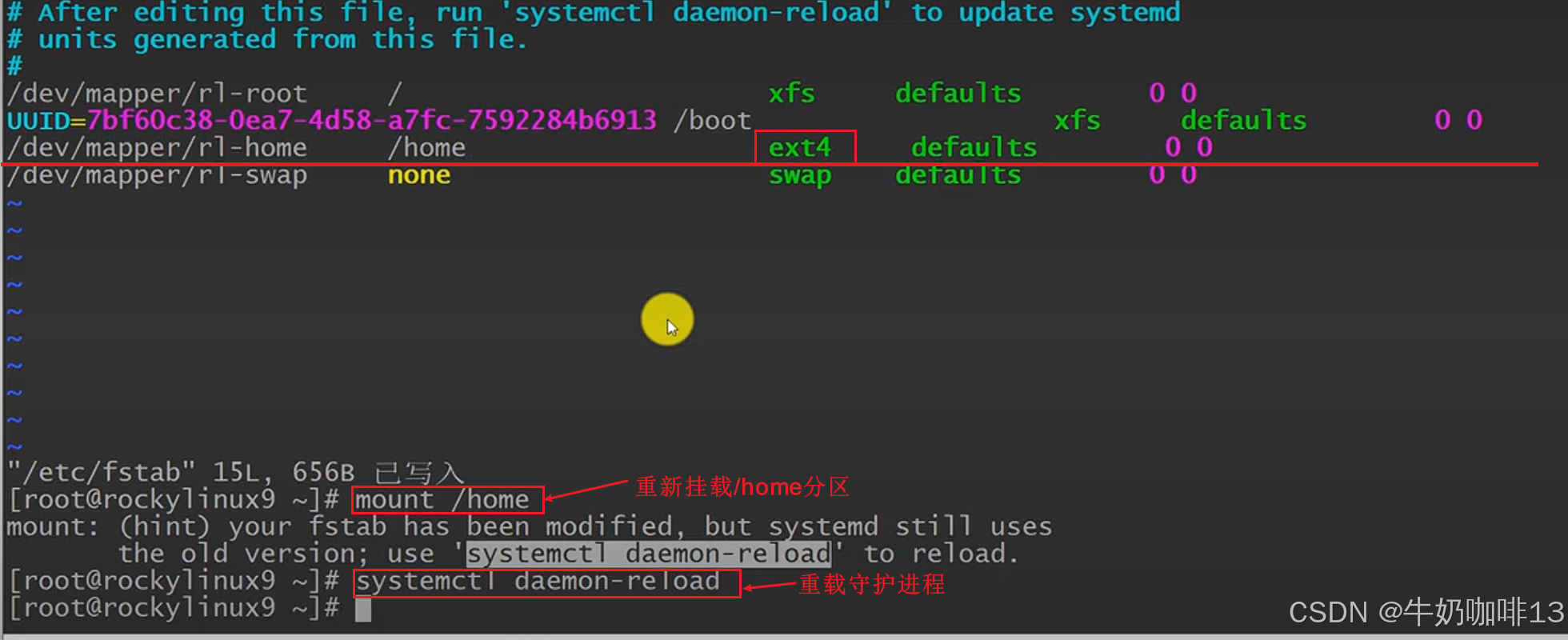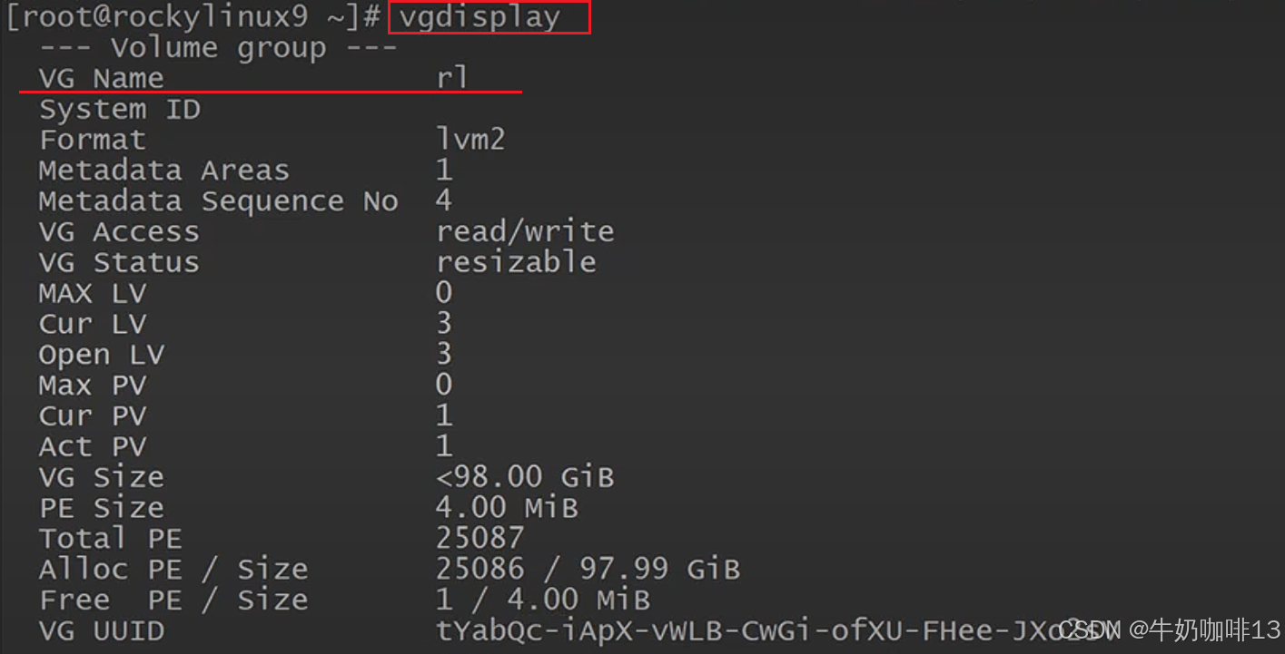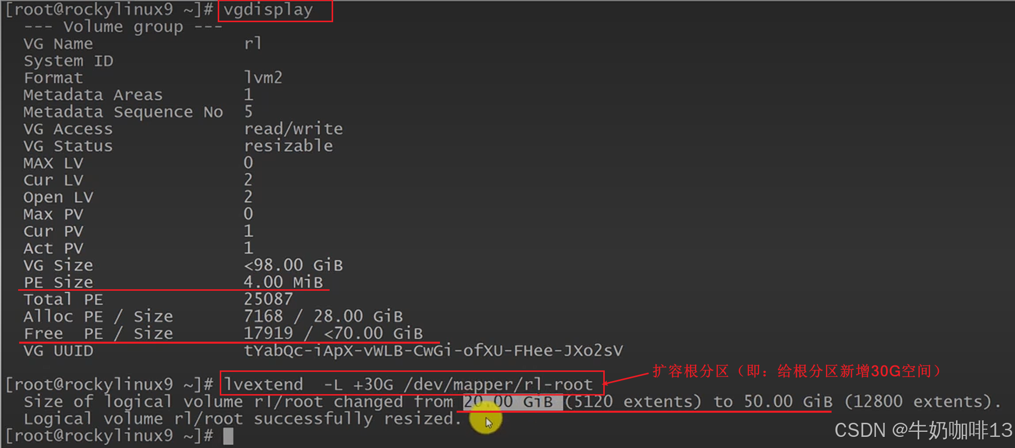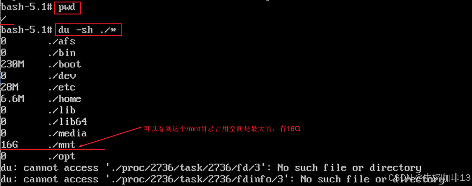 FAILED\] Failed to start GNOME Display Manager. See 'systemctl status gdm.service' for details. "的错误信息,如下图所示:  ## 二、思路分析 ### 2.1、系统无法正常启动的常规思路 一般来说,系统无法正常启动,我们都可以使用该系统的iso镜像文件通过系统启动U盘或PXE引导进入【系统救援模式】中来分析查看具体的错误详情。进入系统救援模式的步骤: 《1》主机上电后不停按下F2键选择系统启动U盘或PXE启动进入引导菜单后选择【Troubleshooting】后按下Enter键--\>【Rescue a Rocky Linux system】后按下Enter键--\>输入【1】后按下Enter键以读写模式进入系统救援模式,可以看到错误信息"dasbus.error.DBusError: \[Errno 28\] No space left on device: '/proc/self/mounts'-\>'/mnt/sysimage/etc/mtab'"(即:设备没有空间,内容没法写入和操作,因为没有存储空间导致系统不能正常启动进入的,只有一种情况就是根分区的空间满了,其他分区的空间满了对于系统启动没有什么影响;既然现在以读写模式进入系统救援模式后无法操作,那我们就以只读模式进入系统救援模式在操作看看)。 《2》重启主机后一样的操作不停按下F2键选择系统启动U盘或PXE启动进入引导菜单后选择【Troubleshooting】后按下Enter键--\>【Rescue a Rocky Linux system】后按下Enter键--\>在系统界面输入【2】后以只读模式进入系统救援模式(模式是两套系统【救援模式的系统类似windows pe】【本主机的原有系统被挂载到 /mnt/sysroot 目录下】;若想要将原系统如正常启动的系统一样的挂载使用则运行 chroot /mnt/sysroot 命令即可);执行【df -hT】可以查看系统当前的所有内容挂载情况(可以看到该主机的原系统根分区使用是100%)。       ### 2.2、系统故障分析确认 在系统救援模式下,使用【chroot /mnt/sysroot】命令切换到该主机系统上后,可以运行【df -hT】先查看所有分区的挂载与使用情况,可以看到当前系统的根分区使用率已经到达100%,与我们最开始预测的根分区满了的推测一致;接下来的操作就是排查根分区中哪个内容是占用空间较大且可以删除的即可解决问题:  ### 2.3、修复故障 排查根分区中哪个内容是占用空间较大且可以删除的: 《1》先查看根分区中占用空间的情况命令是【du -sh ./\*】; 《2》进入这个占用空间较大的目录(如/mnt)中继续执行查看占用空间情况命令【du -sh ./\*】(排查到时swapfile1文件占用空间最大到达15G,且这个文件是用作物理内存不够交换使用的,分的太大了,可以直接删除,但目前是只读文件系统,无法删除文件); 《3》既然当前有问题的根分区是以只读模式挂载的,那么修改为读写模式挂载【mount -o remount,rw /】后再执行文件删除操作即可,然后再次查看系统的所有挂载分区使用情况【df -hT】可以看到根分区已经空闲出15G空间出来使用正常了。 《4》退出当前模式【exit】并重启系统【reboot -f】查看系统是否可以启动后正常进入系统使用。        **到这里恭喜你,故障修复完成,可以成功进入系统中了。** ## 三、隐患解决 ### 3.1、系统隐患问题 虽然目前已经将根分区满的问题暂时解决了,但目前系统的根分区是不合理的(并没有将【/var】【/log】独立出来,都是糅合在根分区上)且目前根分区只有20GB,空间容量也不大,在后续的使用过程中还是会存在根分区空间又满的情况。 ### 3.2、逻辑卷LVM分区的缩容与扩容 [Linux的磁盘存储管理实操------(下一)------标准分区扩容https://coffeemilk.blog.csdn.net/article/details/149533061](https://coffeemilk.blog.csdn.net/article/details/149533061 "Linux的磁盘存储管理实操——(下一)——标准分区扩容")[Linux的磁盘存储管理实操------(下二)------逻辑卷管理LVM的扩容、缩容https://coffeemilk.blog.csdn.net/article/details/149632228](https://coffeemilk.blog.csdn.net/article/details/149632228 "Linux的磁盘存储管理实操——(下二)——逻辑卷管理LVM的扩容、缩容") 查看该主机当前的分区情况(可以看到/home的空间容量较大,剩余空间很多),在没有新增硬盘的基础上实现对根分区的扩容。 《1》LVM且文件系统格式为xfs只能在线扩容,不能缩容; 《2》LVM且文件系统格式为ext4则可以在线缩容和扩容。 而这里的/home分区是xfs格式的,就只能先将该分区的数据备份,然后卸载,接着格式化后操作了。 [Linux系统的常用操作命令------文件远程传输、文件编辑、软件安装的四种方式https://blog.csdn.net/xiaochenXIHUA/article/details/149136931](https://blog.csdn.net/xiaochenXIHUA/article/details/149136931 "Linux系统的常用操作命令——文件远程传输、文件编辑、软件安装的四种方式") [Linux中rsync数据镜像工具的解析与应用实战https://coffeemilk.blog.csdn.net/article/details/150115015](https://coffeemilk.blog.csdn.net/article/details/150115015 "Linux中rsync数据镜像工具的解析与应用实战")[Linux的压缩与解压缩https://coffeemilk.blog.csdn.net/article/details/149109326](https://coffeemilk.blog.csdn.net/article/details/149109326 "Linux的压缩与解压缩")[syncthing的配置使用https://blog.csdn.net/xiaochenXIHUA/article/details/155027993](https://blog.csdn.net/xiaochenXIHUA/article/details/155027993 "syncthing的配置使用")[国产统信UOS专业版桌面、服务器系统的安装部署、备份与还原实践保姆级教程https://coffeemilk.blog.csdn.net/article/details/155530808](https://coffeemilk.blog.csdn.net/article/details/155530808 "国产统信UOS专业版桌面、服务器系统的安装部署、备份与还原实践保姆级教程") ```bash #对LVM(逻辑卷管理)的/home分区进行缩容操作;并对LVM管