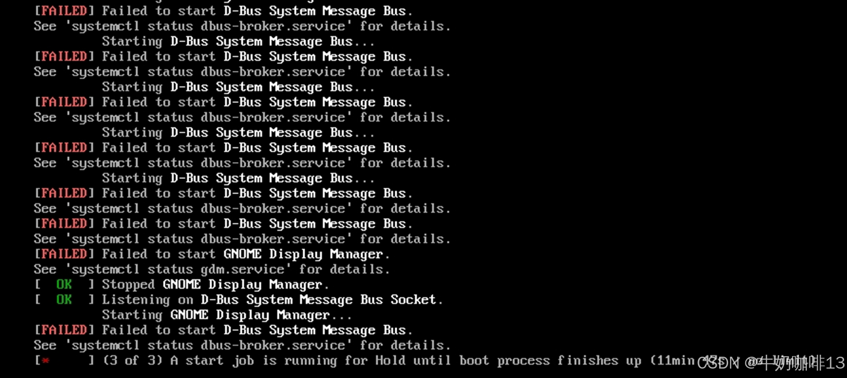 这里是RockyLinux9的线上服务器掉电后重新启动无法正常进入系统的故障,会显示很多类似"[FAILED] Failed to start D-Bus System Message Bus.