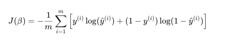 逻辑回归的训练目标由交叉熵损失函数来定义的,该函数是专门用于衡量模型预测的概率分布与真实的类别标签之间的差异,其数学表达式为:
