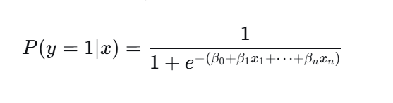 在逻辑回归模型中,Sigmoid函数的作用是将线性回归模型产生的任意实数输出非线性地映射到 (0, 1) 区间内,该映射结果被直接解释为样本属于正类的预测概率,使逻辑回归得以基于概率阈值(通常为0.5)进行明确的分类决策。其具体形式为:
