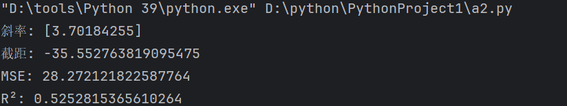 print("斜率:", model.coef_) # 回归系数(斜率a)