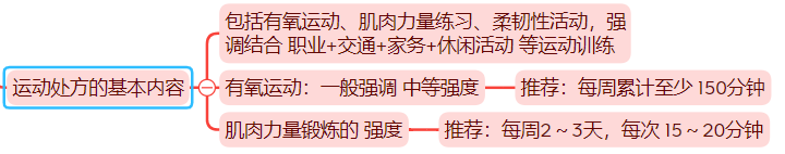 一般包括有氧运动、肌肉力量练习 和柔韧性活动,强调结合日 常生活中的职业、交通、家务和休闲活动等进行运动训练。