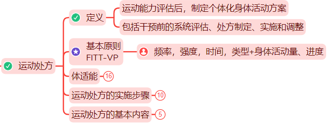 运动处方:在对个体进行运动能力评估的基础上,制定的个体化 身体活动方案。