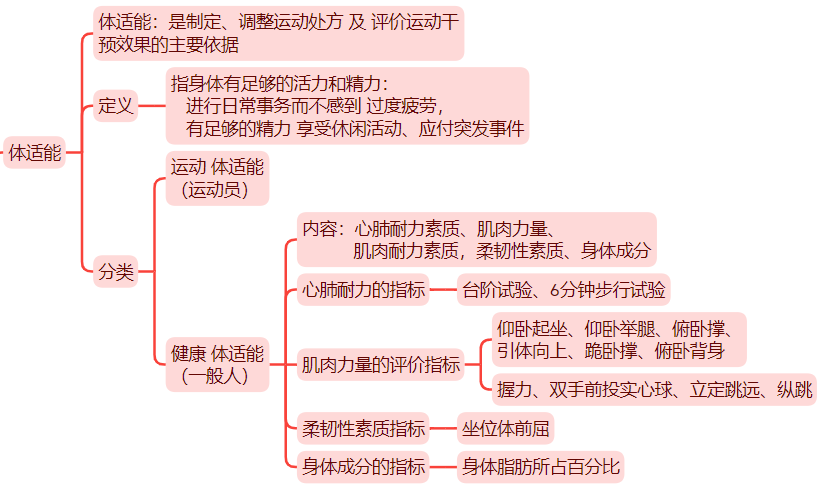 体适能:是指身体有足够的活力和精力进行日常事务而不感到过 度疲劳,并且有足够的精力享受休闲活动和应付突发事件的能力。