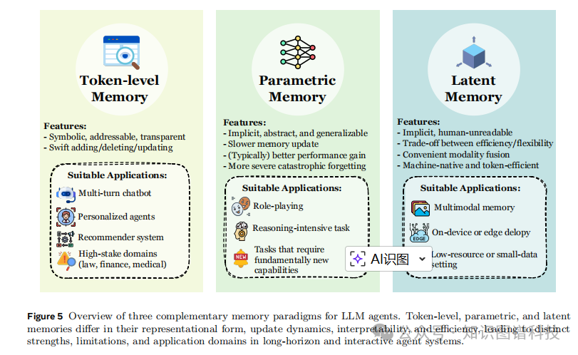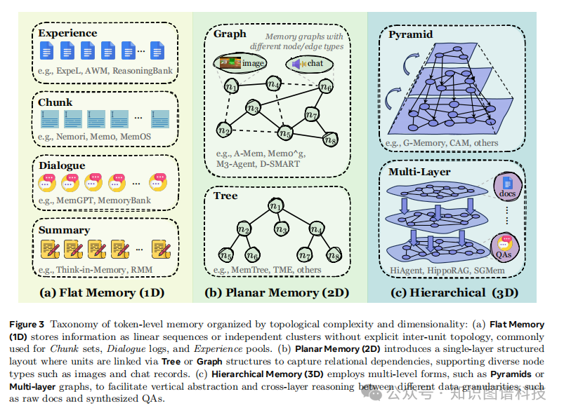智能体记忆系统可以通过多种架构或表示形式实现。本节从形式 角度识别三种主流记忆实现:令牌级记忆 、参数化记忆 和潜在记忆。
