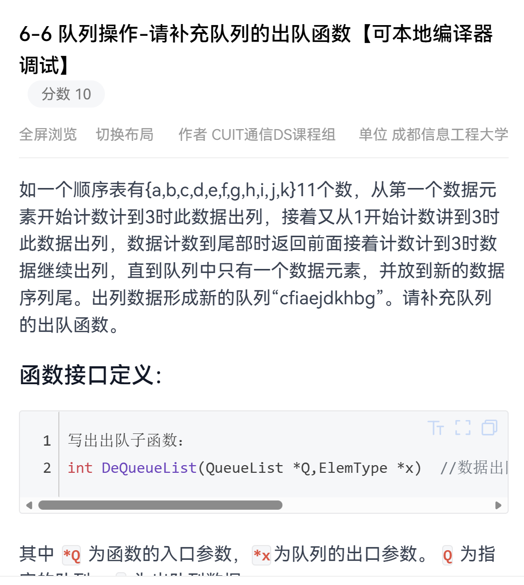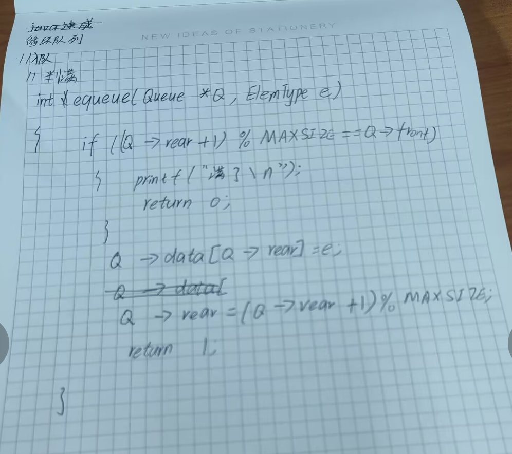 新手常见错误 :直接用 Q->rear == MAXSIZE 判满,忽略循环特性,导致数组空间浪费。