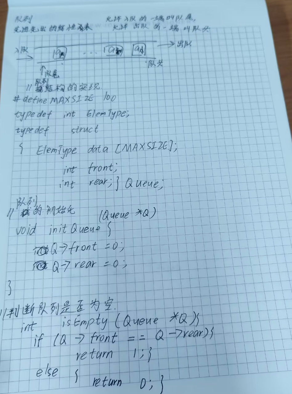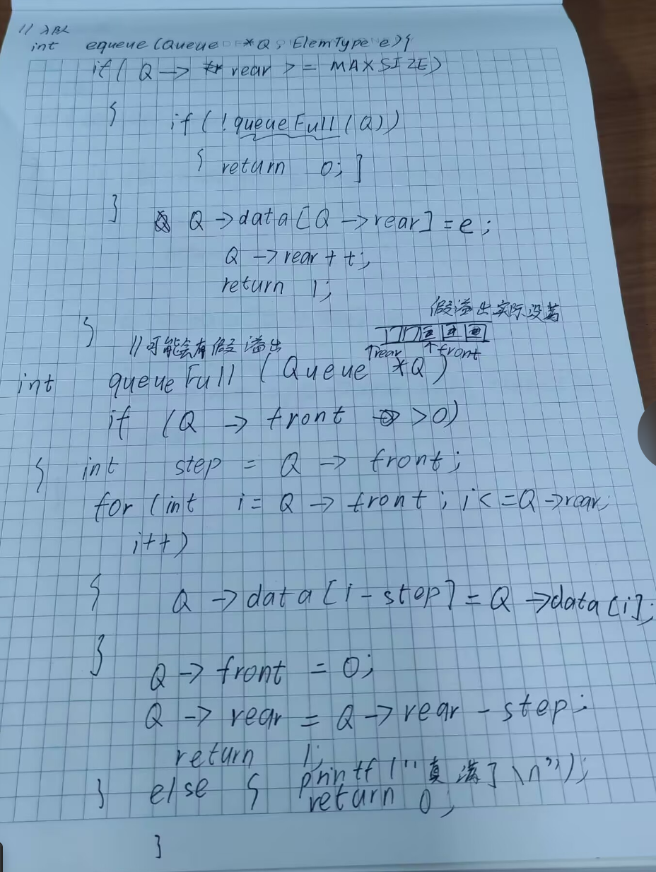 rear >= MAXSIZE就是队满,忽略队头空出的空间; - 指针操作未判空:调用出队函数前未检查队列是否为空,导致访问无效元素。
