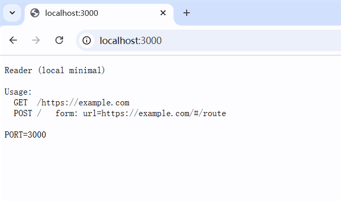 此时服务启动,我们可以进入网址(在config.json自查),例如我的port是3000(自配)