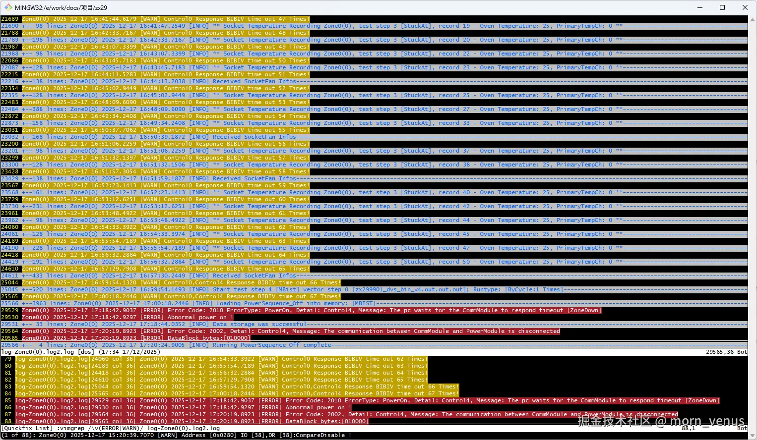 - 平常看日志都是用vim来查看,主要是使用vim能够快速打开大文件不卡顿,且搜索迅速,筛选也非常便捷