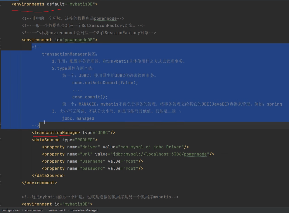 MyBatis支持配置多个环境,这在开发、测试、生产环境分离的场景下非常有用: