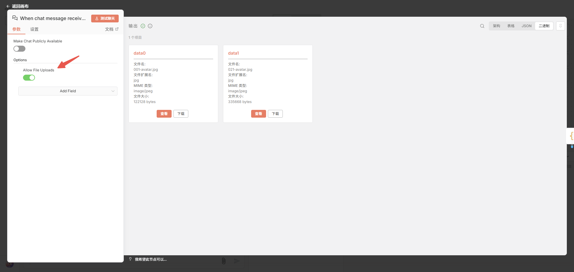 chat节点上传多个图片时,默认只有一个item,多张图片使用不同的key挂载到这个item上