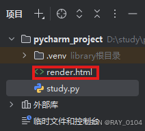 运行代码后,会发现什么也没有,这个时候打开左侧的项目管理器,发现出现了一个【render.html】的文件