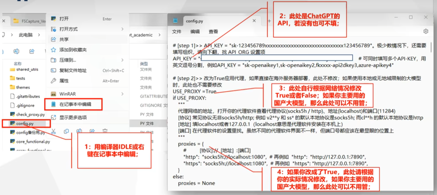 GPT-Academic 的交互界面基于浏览器运行,核心分为 5 个区域,操作逻辑简洁直观: