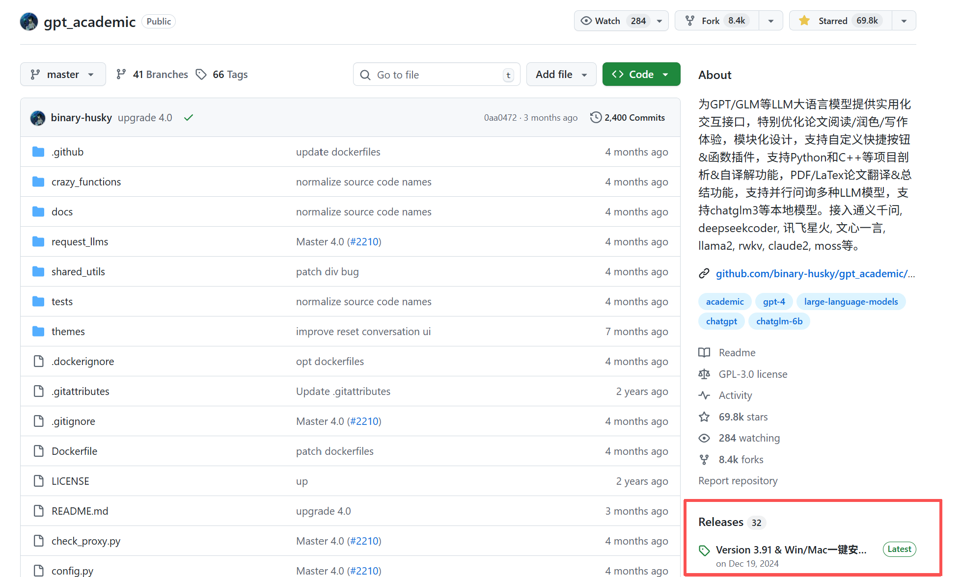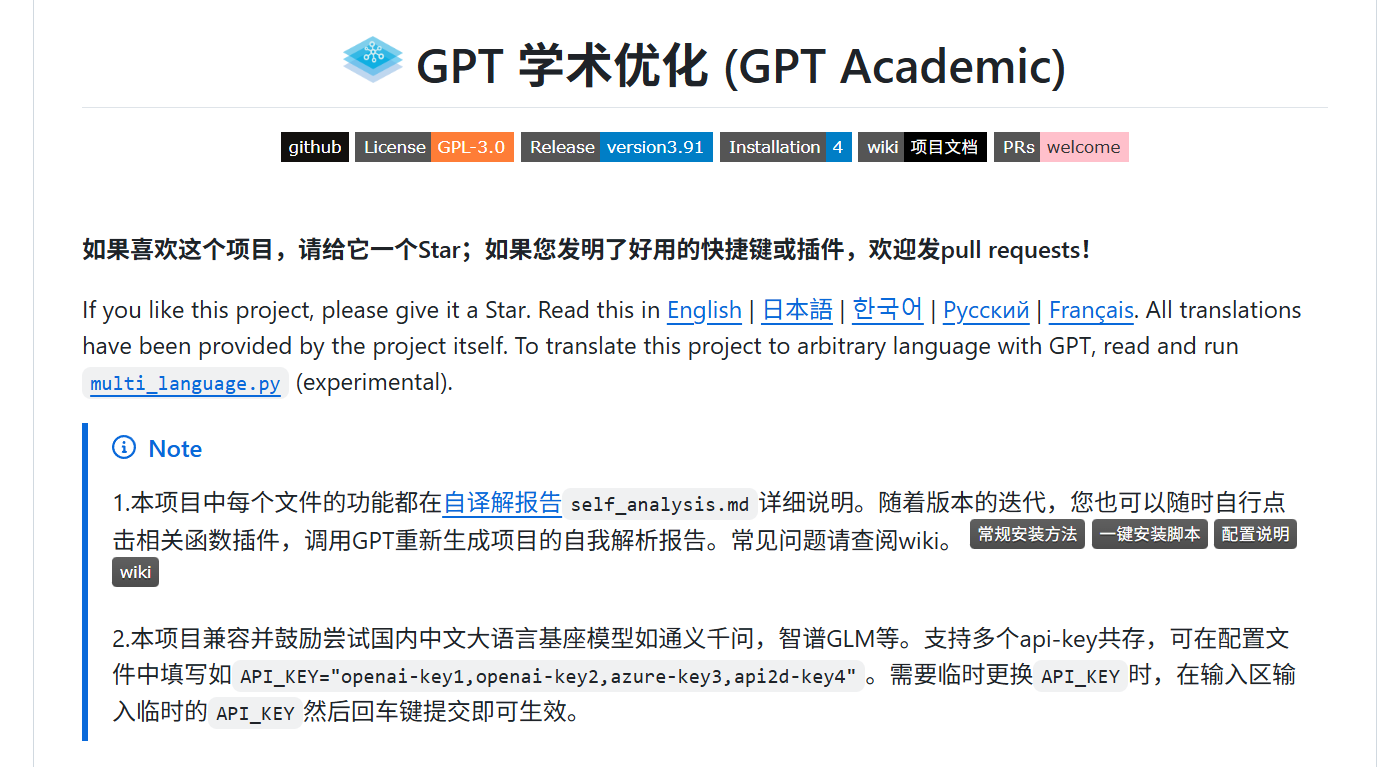 GPT-Academic (又称 "GPT 学术优化")是由中科院团队主导开发的开源学术辅助工具,旨在解决科研人员在论文处理、代码分析、文献调研中的效率痛点,目前在 GitHub 已收获6 万 + Star,被称为 "科研人的耶路撒冷"。其核心价值在于以 "模块化交互界面 + 多模型兼容" 为基础,将 AI 能力与学术场景深度结合,覆盖从文献阅读到论文写作的全流程,且支持免费使用,大幅降低学术工作的技术门槛。