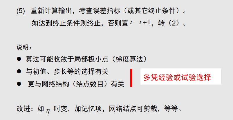 在以上过程中,5尤其重要,如何确定一种调节连接权值的原则,使误差沿着最小的方向发展,是BP必须解决的问题