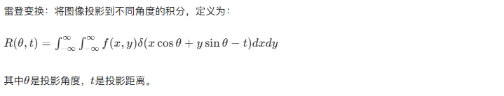 - 掌握从投影重建图像的核心原理(雷登变换、滤波反投影)及 CT 成像应用。