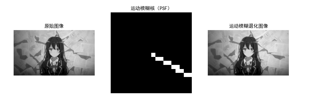 - 生成不同角度 / 长度的运动模糊核,测试维纳滤波中参数 K 的最优值;