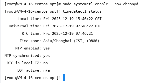 timedatectl status # 确认 "System clock synchronized: yes"
