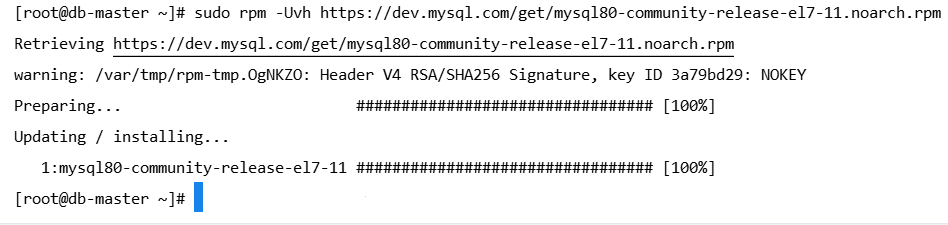 sudo rpm -Uvh https://dev.mysql.com/get/mysql80-community-release-el7-11.noarch.rpm