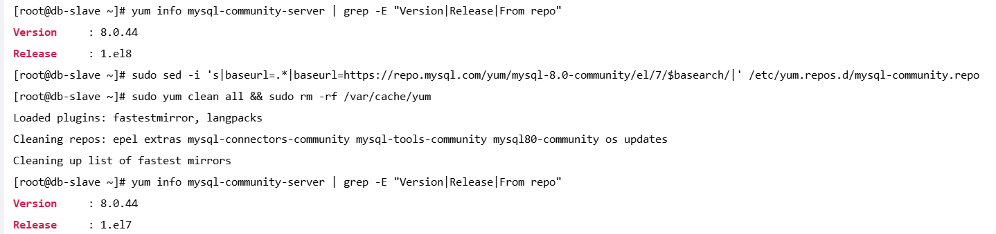 sudo sed -i 's|baseurl=.*|baseurl=https://repo.mysql.com/yum/mysql-8.0-community/el/7/$basearch/|' /etc/yum.repos.d/mysql-community.repo