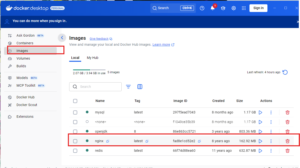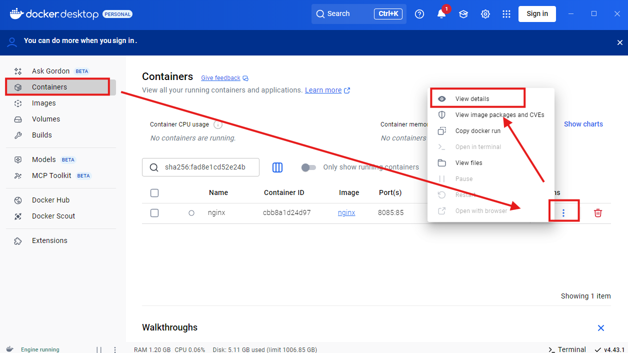 方法 1:在 Docker Desktop 界面查看(简单直观)