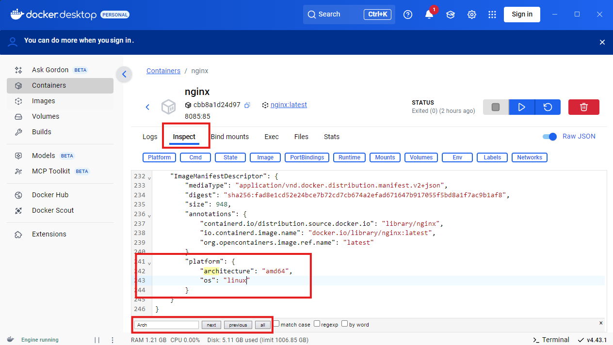 - 若返回 arm64 → 是 ARM64 架构,需重新拉取 x86_64 版本(参考之前的docker pull --platform