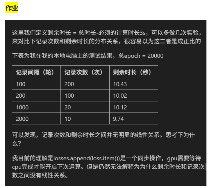 losses.append(loss.item()) 本身是轻量级操作(只是把一个数值存到列表里,耗时极短,可能只有微秒级)。而深度学习训练的主要耗时在:GPU 的前向 / 反向传播(占总耗时的 95% 以上);数据加载、内存拷贝等其他系统操作。且剩余时长本身是估算值,系统动态随机因素影响。