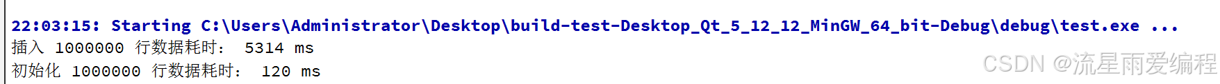 qDebug() << "插入" << totalRows << "行数据耗时:" << timer.elapsed() << "ms";