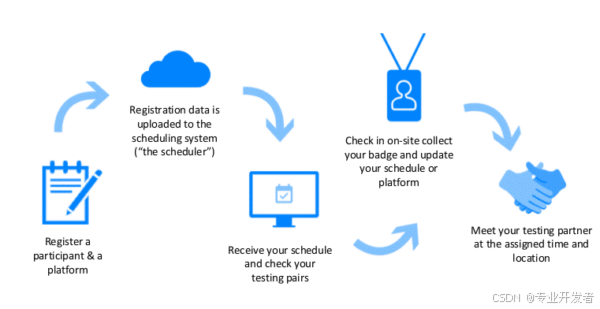 UPF 的所有测试场次均通过自动化调度系统安排:系统会匹配具备互补能力与角色的平台,再将这些组合安排为 1 小时的测试场次。配对时依据的 "能力与角色",需在注册平台时设置。
