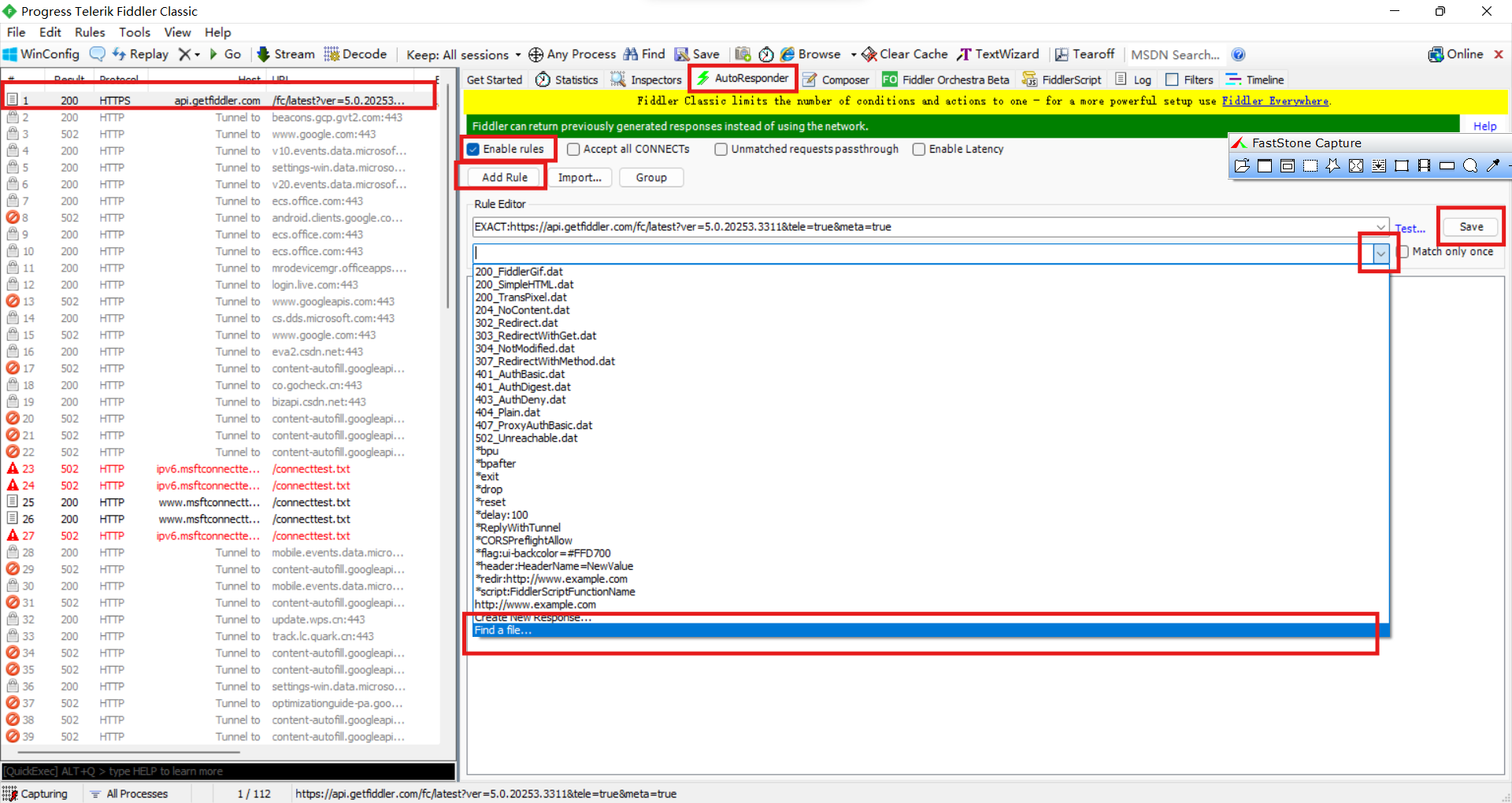 - 选择一个请求,点击AutoResponder勾选enable rules,点击Add Rule。