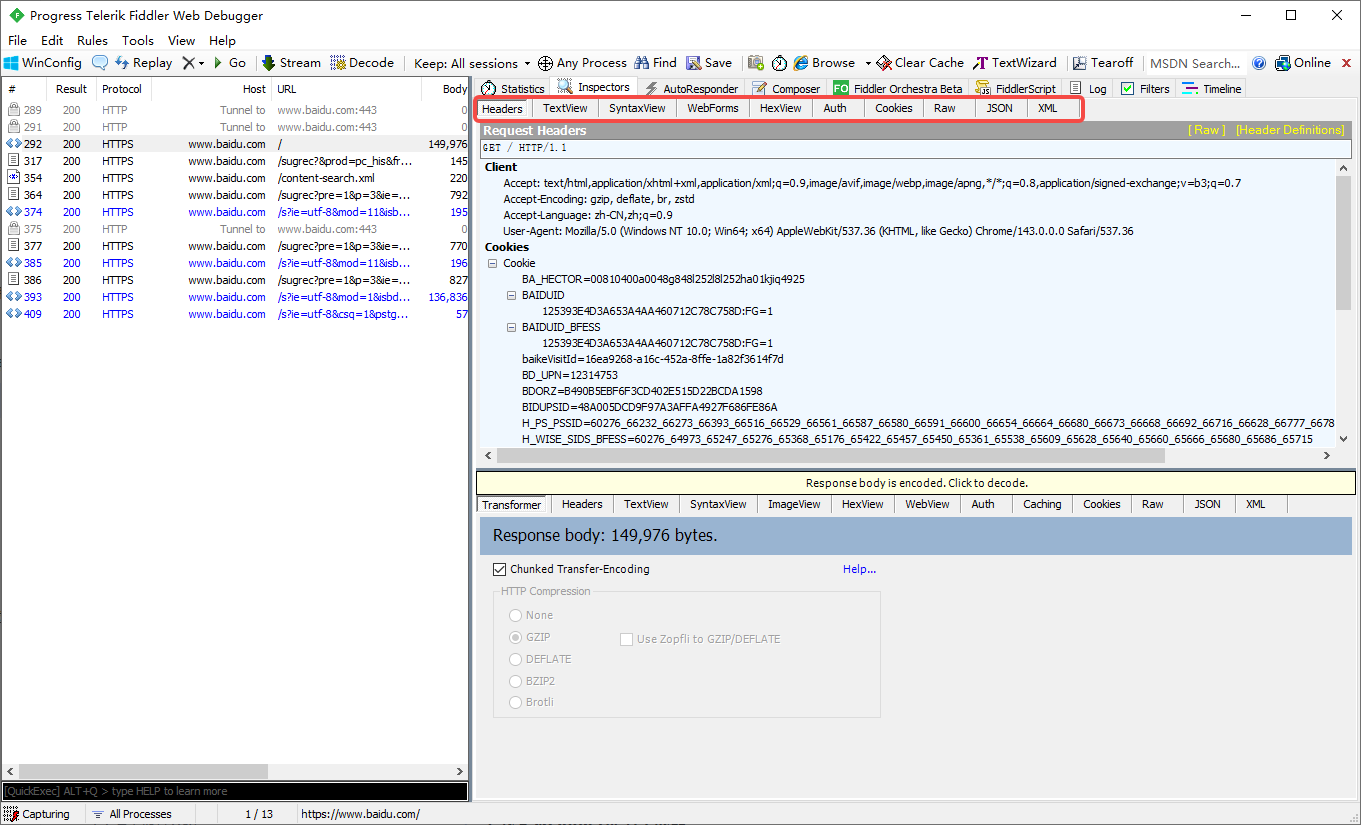 - Json:如果请求的body是json格式,就是用分级的Json来显示它。